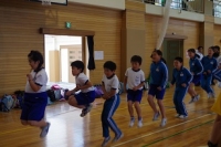 2017年6月23日 17時11分今日の午後は、荒海中学校に移動して「荒海っ子交流会」を行いました。荒海小中連携事業の1つで、今年度の内容は中学生が企画したレクリエーション大会でした。小学1年生から中学3年生までが一緒のチームを作り、長縄飛びとタワー作りを楽しみました。どちらもチーム全員の気持ちを合わせて取り組む種目でしたので、小学生も十分に活躍することができ、満足そうな様子が見られました。楽しい時間を作ってくれた中学生に感謝でいっぱいです。