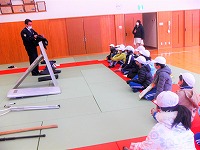 子どもたちは、警察の方々に丁寧に説明していただきながら、パトカーを見たり護身の方法を聞いたりしました。