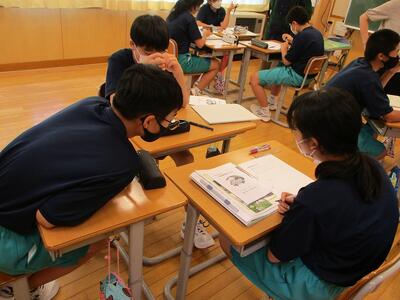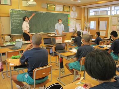 2年生は英語。気象情報を相手に伝えるための表現方法について学習していました。