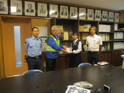 反射材贈呈式 2022年9月21日 13時30分 ニュース 本日昼休みに、交通安全協会より反射材を贈呈していただきました。荒海地区が反射材モデル地区となっているので、「普及への協力を」と生徒会長の渡部愛未さんが代表で反射材を受け取り、交通安全に努めることを誓いました。