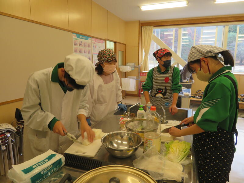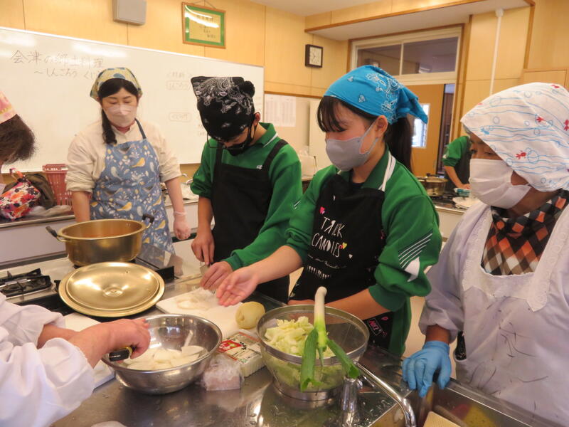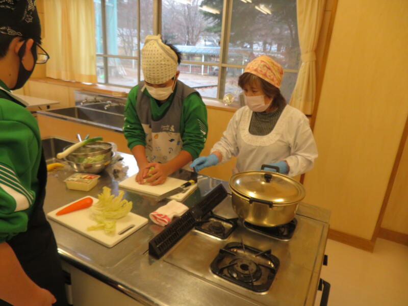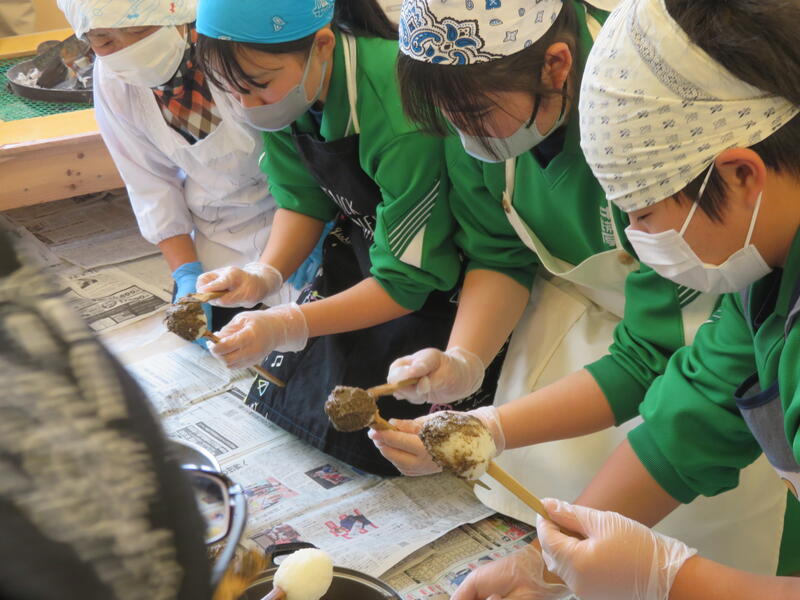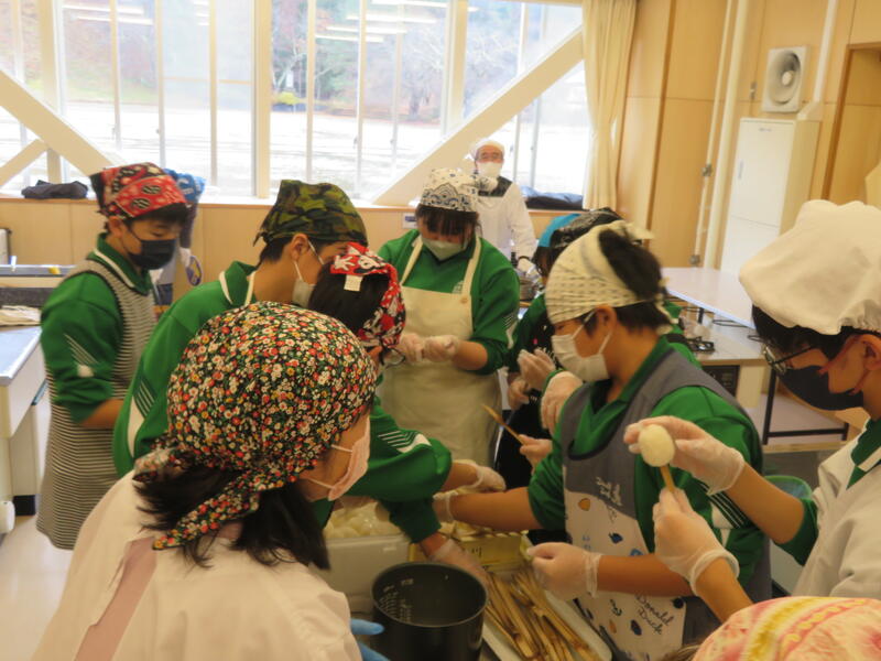 生徒が郷土料理について学び、実際に調理をすることで、荒海地区の食文化に親しみをもてるように、講師の先生方は、たくさんの準備・補助をしてくださいました。おかげさまでお腹も心も大満足の様子でした。貴重な機会をありがとうございました。