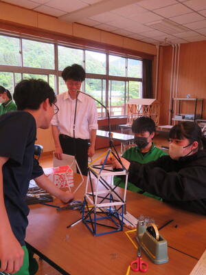 2024年6月7日 16時42分本日、2年生の理科の授業において、南会津建設事務所から講師の先生をお招きし、「地震に強い家の造りを学ぼう!」というテーマの元、住宅耐震出前講座を開催しました。地震のメカニズムや、地震に強い建物とはどういうものか、地震から自分や家族の命を守るためにはどうすればよいかという方法を教えてもらいました。