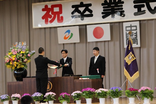 15名の卒業生は、中学校3年間の思い出と、新しい生活への希望を胸に、大変立派な姿で卒業していきました。