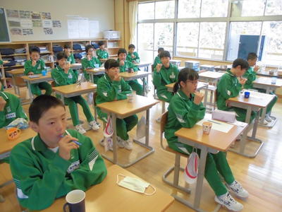 各学級では、給食終了後、全員で決められた時間を歯みがきをする取組や生徒会保健委員による、お昼の放送での呼びかけが行われました。