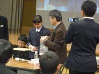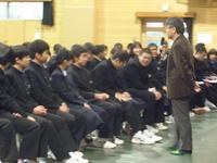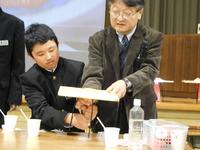 講演会では、「荒海中学校と自然災害~自分たちの大地を知ることは、自分たちを守ることにつながる~」の演題で、地中の動きを具体的な実験を見せていただきながら講話を受けました。