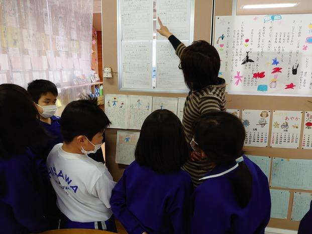 2020年2月26日 15時16分1年生は、今まで取り組んできた学習を振り返っていました。