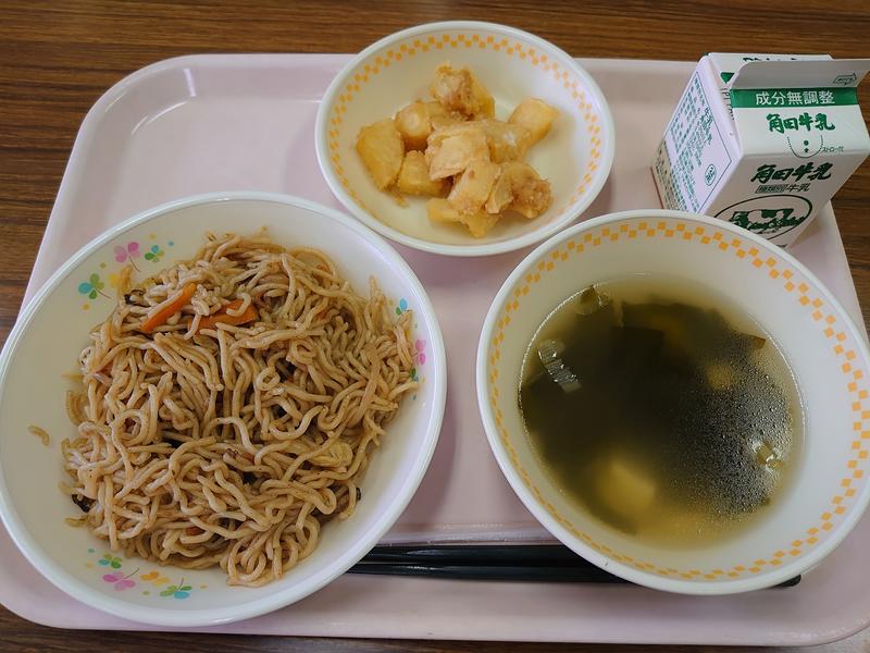 2020年9月2日 12時40分やきそば、牛乳、わかめスープ、じゃがくん