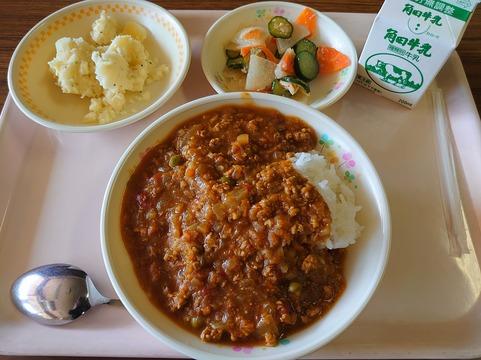 2020年10月2日 12時20分キーマカレー、牛乳、大根サラダ、チーズマッシュ