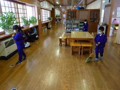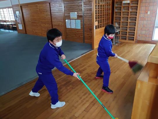 2021年2月10日 08時10分1年生や2年生もがんばってます。上手に整理整頓やお掃除してます。