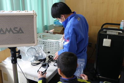 パソコン室の機材を整理する姿など