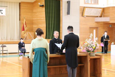 2022年3月23日 11時15分春の訪れを感じるこの佳き日に伊南小学校卒業証書授与式を行いました。