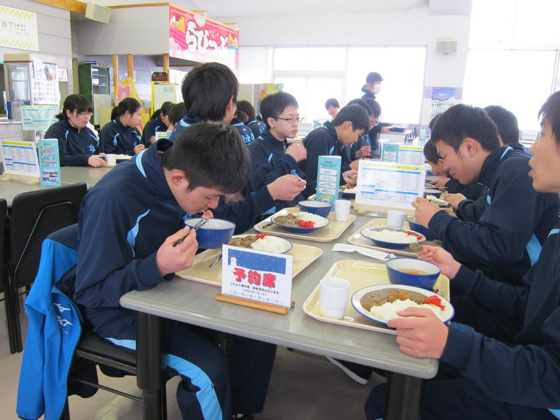 2020年2月19日 14時21分2月18日(火)に予定していたスキー教室が中止になり、生徒だけでなく職員も残念な気持ちでおりました。が、町並びに町教委にご配慮をいただき、南郷スキー場に昼食のカレーと豚汁を食べに行くことができました。スクールバスなど3台を準備していただき、午前中の授業が終わるとすぐに乗り込み、いざ南郷スキー場のセンターハウスへ!お昼頃に南会津中へ電話や来校された方は在校者が1名のみのため、玄関を施錠しているなど、十分に対応できなかったことをお詫び申し上げます。