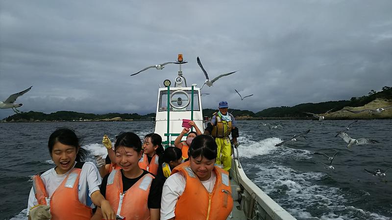 2020年9月17日 10時48分朝から舟に乗って、かご網漁と海猫餌やり体験をしてきました!男子は大漁でしたので、捕ったものは宿の夕飯に出していただきます。女子は海猫に、自分に?エビせんを食べさせてジェットコースター気分を味わいました。なかなかできない体験でした。