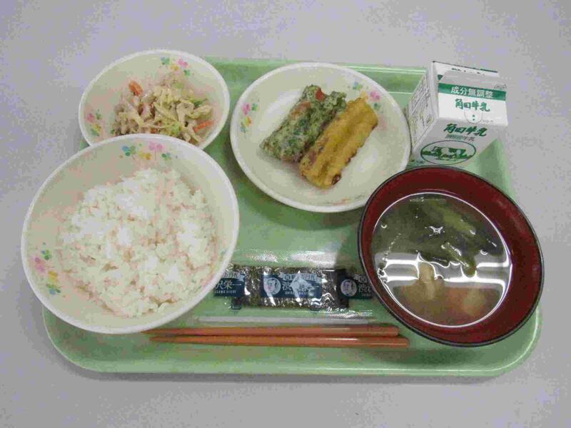 ・ご飯 ・牛乳 ・小松菜のみそ汁 ・ちくわの2色揚げ ・シャキシャキサラダ