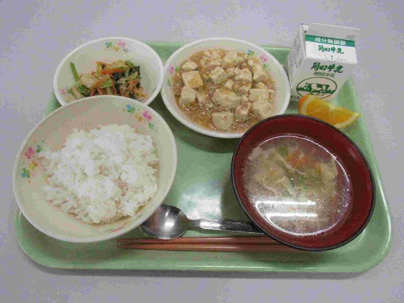 ・ご飯 ・牛乳 ・中華たまごスープ ・マーボー豆腐 ・小松菜ナムル ・オレンジ