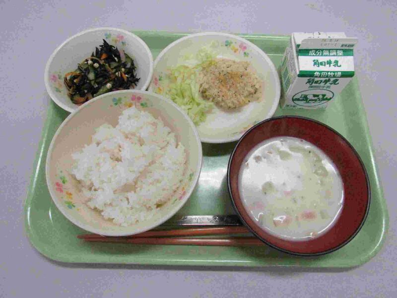 ・ご飯 ・牛乳 ・クラムチャウダー ・ミラノ風チキンカツ ・キャベツ
