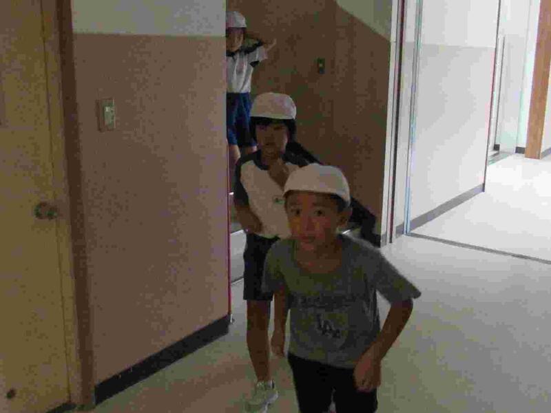 今回は、休み時間に地震がきて、停電し、急きょ避難場所を変更することを想定して、