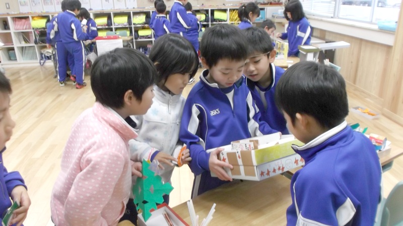 2015年11月24日 17時39分 今日は、1年生の生活科発表で、2年生をご招待です。先月、2年生から「遊びのおもてなし」を受けました。それを参考に、今回は1年生が、2年生を遊びでおもてなしする番です。楽しませることを楽しむ気持ちが味わえたかな?