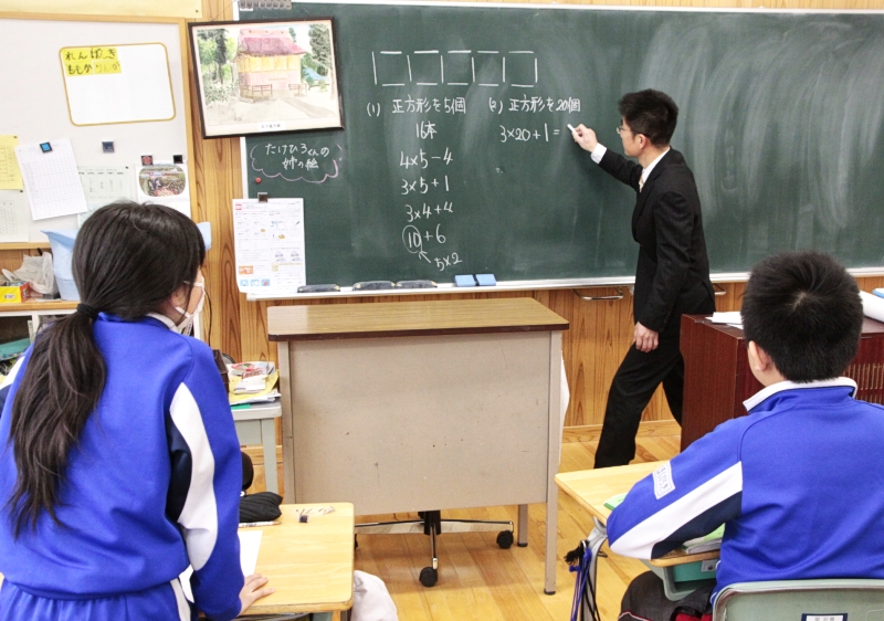 今日は、コアティーチャーの齋藤先生(南会津中)が来校する日です。6年生は、担任とのT.Tで、「数を予測する」学習をしました。