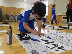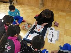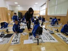 2018年12月12日 11時49分昨日、今日と講師に川井美枝子様をお迎えし、3年生以上を対象に実施しました。6年生が「雪の連山」、5年生が「平和な里」、4年生が「初日の出」、3年生が「お年玉」の課題に挑戦しました。筆の運びから手を取っての筆圧の実感まで、丁寧に教えていただきました。