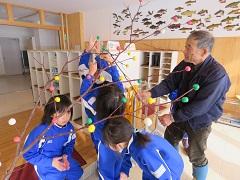 2019年1月15日 12時33分1年生がだんござしを体験しました。講師の月田禮次郎様にだんごさしなど地域の伝統行事について話をしていただきました。その後、3名のおうちの方々に手伝っていただきながら、だんごを丸めたり茹でたりしました。最後に、茹で上がっただんごをミズキにさして飾りました。子ども達にとって貴重な体験となりました。月田様をはじめご協力いただきました3名の皆様、ありがとうございました。