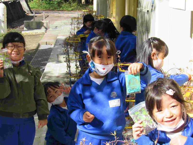 子どもたちが、収穫した種を見せてくれました。とてもうれしそうでした。(^^)