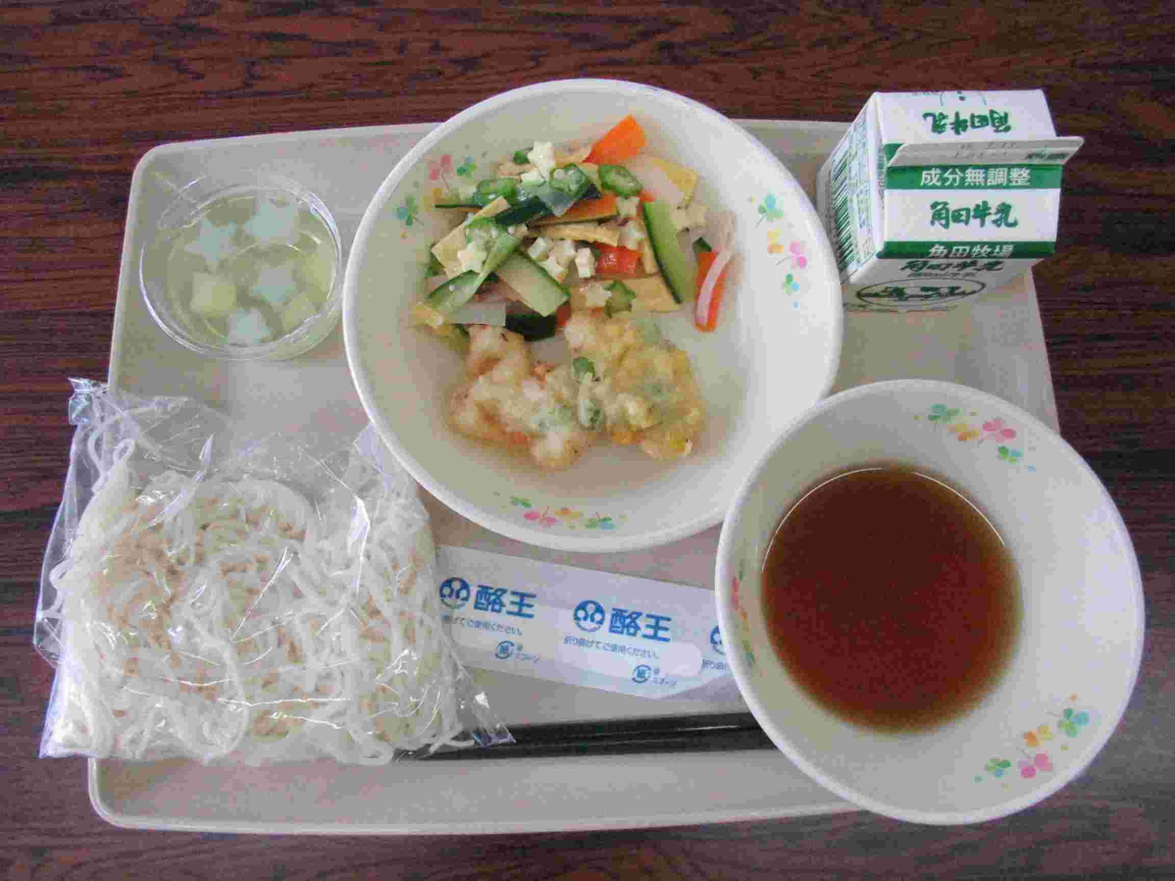 ・そうめん ・牛乳 ・かき揚げ ・5色の短冊サラダ ・七夕ゼリー