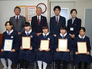 入賞者は5名ですが、福島県司法書士会会長賞を受賞した2年大桃夏鈴さんは11月27日に相馬市立中村第一中学校で行われた県の表彰式で発表と受賞をしてきました。今回は奨励賞として、2年の星愛蓮さん、大竹葉月さん、湯田瑠杏さん、渡部心羽さんの4名が賞状をいただきました。田島中としても感謝状をいただきました。