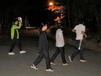 ふくしま駅伝選手に選ばれた力仁先生と3名の生徒たちです。暗闇の中を練習している姿が印象的でした。