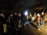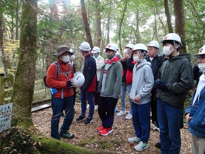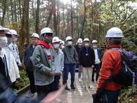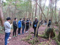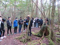 修学旅行2日目の最初の見学場所は、「じっくり富士山エコネットツールズム西湖自然体験」と名付けられた、インストラクターの先生の説明を聞きながらの「コウモリ洞窟」と「樹海」の散策です。富士山噴火により創り出された自然を存分に楽しみました。