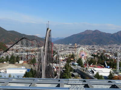 修学旅行2日目、見学場所2カ所目は、生徒たちのお待ちかね「富士急ハイランド」です。日本が誇る絶叫系アトラクションを思う存分、楽しみました。今回の修学旅行で遊園地が一番寒いと聞いていたのですが、快晴に恵まれ、温かい中で半日を過ごしました。