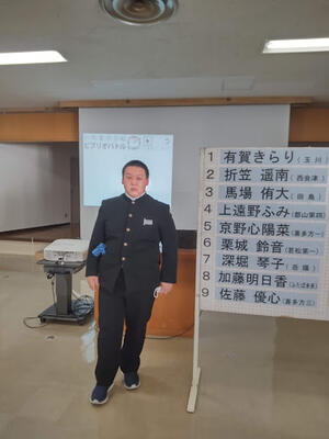 修学旅行中も練習に励み、予選会への参加者唯一の男性として、参観者から笑いを誘う発表は素晴らしい姿でした。