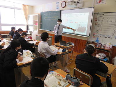 2022年1月20日 15時10分社会科担当の武尾先生が研究授業を行いました。