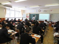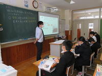 今回は2年1組の教室で授業を行いましたが、生徒たちの発言は積極的で、とても良い授業となりました。