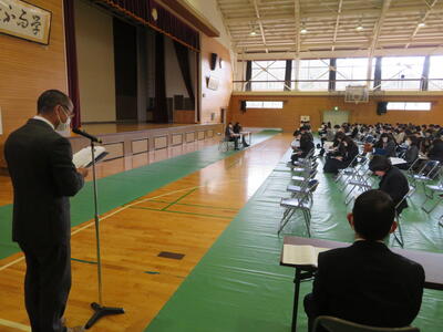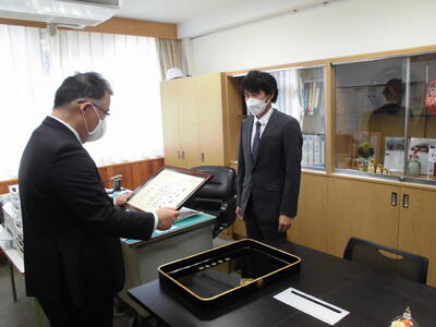 また、午後には田島中学校のPTA表彰として、3年間にわたり本校ソフトボール部の外部コーチを務めて頂いた、渡部裕一郎様への表彰式を挙行しました。渡部先生ありがとうございました。