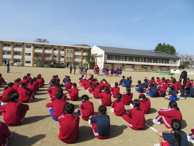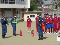 校舎内での出火を想定し、校庭への避難を速やかに行う姿は大変良いです。