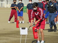 来校頂いた署員の方の中には、本校の卒業生もおり、和やかな雰囲気で消火訓練を行いました。