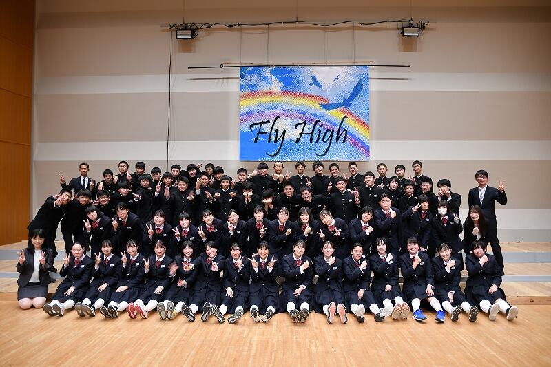 開祭式では、学友会会長・大桃帆夏さん、実行委員長・湯田心道くんのあいさつ、から始まり、テーマ発表・テーマ曲披露、ビックアート披露,そして開祭宣言が行われました。