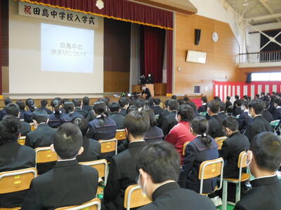 学友会役員から、生徒会活動や学友会規則、各部活動の紹介などがあり、ようやく生徒にとっての新スタートが切られました。