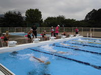 2019年9月3日 16時53分先週金曜に予定していた、上学年の水泳記録会が昨日へ延期となり、無事実施できました。途中で小雨が降ってきましたが、各学年、雨をものともせずとても頑張って泳ぐことができていました。また、応援の保護者の方々も、30名を超える人数でした。ご多用の中、ありがとうございました!