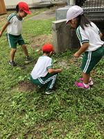 待ちに待った虫探し。虫かごに工夫してすみかを作り、校庭に飛び出した子どもたち。「なかよしの庭」「自然いっぱい園」の草むらを一生懸命探しました。なかなかお目当てのバッタは見つかりませんでしたが、こおろぎやツチバッタを見つけ大満足。昼休みも仲良く虫取りをしていました。五時間目、教室でこおろぎの鳴き声を聞いて、虫を見つけたとき以上の感動を味わっていたようです。