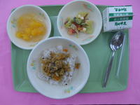 何気なく耳にし、当たり前に口にしていますが、「甘夏の寒天ジュレ」。ゼリーではなくジュレと言うだけで、どこかおしゃれな印象を受けます。ジュレはフランス語、ゼリーは英語ですが、どちらも同じもの。ネーミングって大事だと、献立を見ながらいつも感じています。給食のメニューも、昭和から平成、そして令和とどんどん変化しています。これからどんなものが登場するのかとても楽しみです。