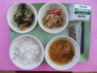 並べてみてびっくり!今日の献立は、海のものでいっぱいでした。のり・もずく・糸寒天・わかめ・かまぼこ、偶然なのか意図的なのか、どちらにしても、なんだかとっても楽しくなりました。箸を上手に使って、海苔でご飯を巻いて食べるのが少しずつ上手になってきた1年生です。