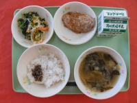 2016年6月28日 05時56分手作りのものが多く、いつもおいしさと同時に愛情をたくさん感じながら給食を食べています。本日の給食は、全て手作り、手間暇のかかった給食でした。じゃこと青じその油味噌は、白いご飯にとても良く合っていました。つくねは、ごぼうのシャキシャキ感そして甘いタレがかかっていておいしかったです。いろどり和えはたくさんの野菜が、目にもおいしい一品でした。新じゃが、新玉ねぎそしてわかめの定番みそ汁は、お母さんの味を感じさせてくれました。家庭でも、こんな食事を毎回食べていたら、心も身体も健康に育ちますよね。