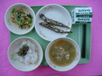 2016年11月29日 06時20分「このみそおいしい!」「ご飯が何杯でも食べられそう~」今日の油みそは、大好評でした。でも、初めて見たときは、何となく味がイメージできず「少しでいいです!」と言っていた子ども達でした。今の食卓にはあまり登場しない油味噌ですが、昔はよく食べられていたそうです。給食ではじゃこが入っていて栄養価も高く、最高のご飯の友と言ったところです。ごまたっぷりのししゃもも「頭から食べる?」「しっぽから?」でまたまたひと盛り上がりしました。