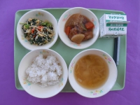 2017年2月4日 15時54分 味が良く染みこんだ柔らかい大根とブリは冬のごちそうです。魚はちょっと苦手という子も、甘辛い味がご飯によく合って、箸が進んでいました。ほうれん草の緑と卵は、彩りどり鮮やかで、見た目からも元気になりそうな一品でした。