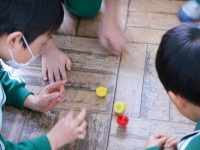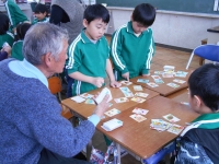 本日のつどいの広場は、「昔のおもちゃで遊ぼう」ということで、こまやカルタ、福笑いなどで楽しい時間を過ごしました。普段遊んでいる子どもたちが、遊び方をつどいの広場の先生方に教える場面も見られました。好きな場所に自由に移動しながら遊んでいた子どもたちは、45分間があっという間に感じたようです。ルールや約束をしっかり守り、仲良く活動できました。初めの頃のつどいの広場を思い出すと、いろいろな面で子どもたちの成長を感じることができました。