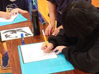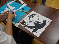 「切り絵」づくりでは、切り絵用のカッターの使い方に始めは四苦八苦していました。作業の後半では、専用のカッターにも慣れ、曲線を上手になめらかに切り抜くことができるようになりました。