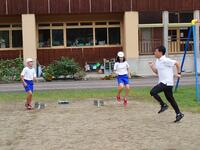 2023年9月21日 17時15分 本日も特別時程の課外活動日の設定のもと、陸上大会へ向けての練習を6年生と全教員で行いました。