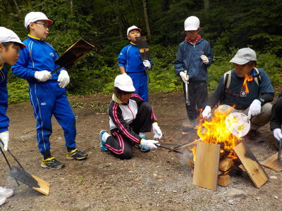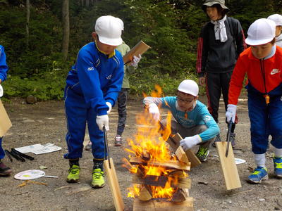 前山登山、名刺交換会、岩魚さばき、焼き板などの活動をともにしました。